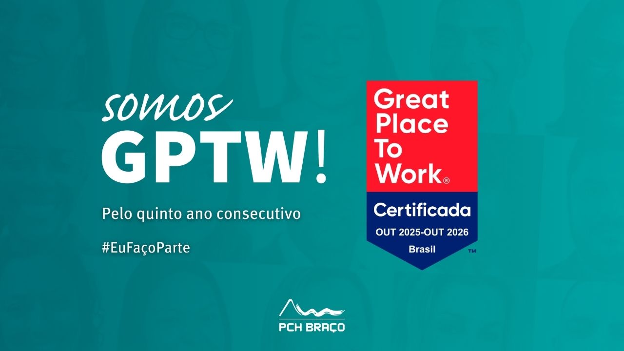 Temos muito o que celebrar! Pela quinta vez consecutiva, a PCH Braço conquistou a certificação Great Place to Work (GPTW), um dos reconhecimentos mais respeitados do mundo quando o assunto é clima organizacional e satisfação dos colaboradores.